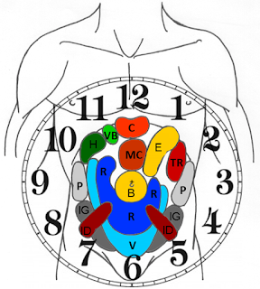 Hay varios mapas del hara y los órganos reflejos, pero este podía ser uno de los más usados.